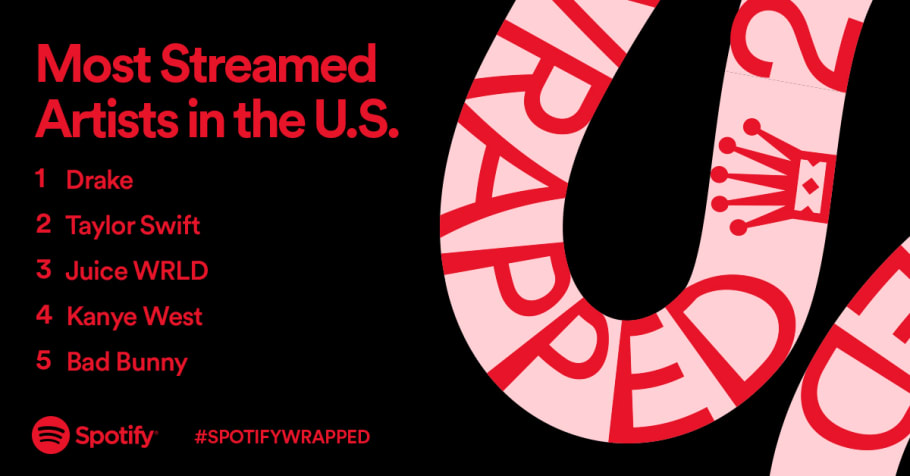 Spotifys 2021 wrapped unveiled the top. Listen now only on Spotify. Most Streamed Artists Globally Bad Bunny Taylor Swift BTS Drake.